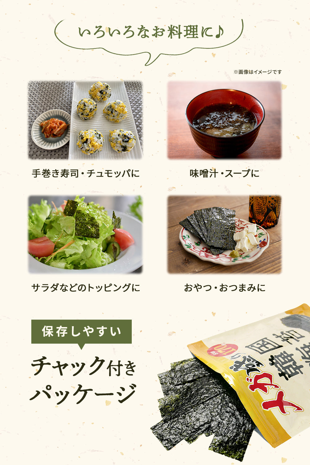 本場の韓国で愛されている多くの穴が空いている海苔に仕上げました。